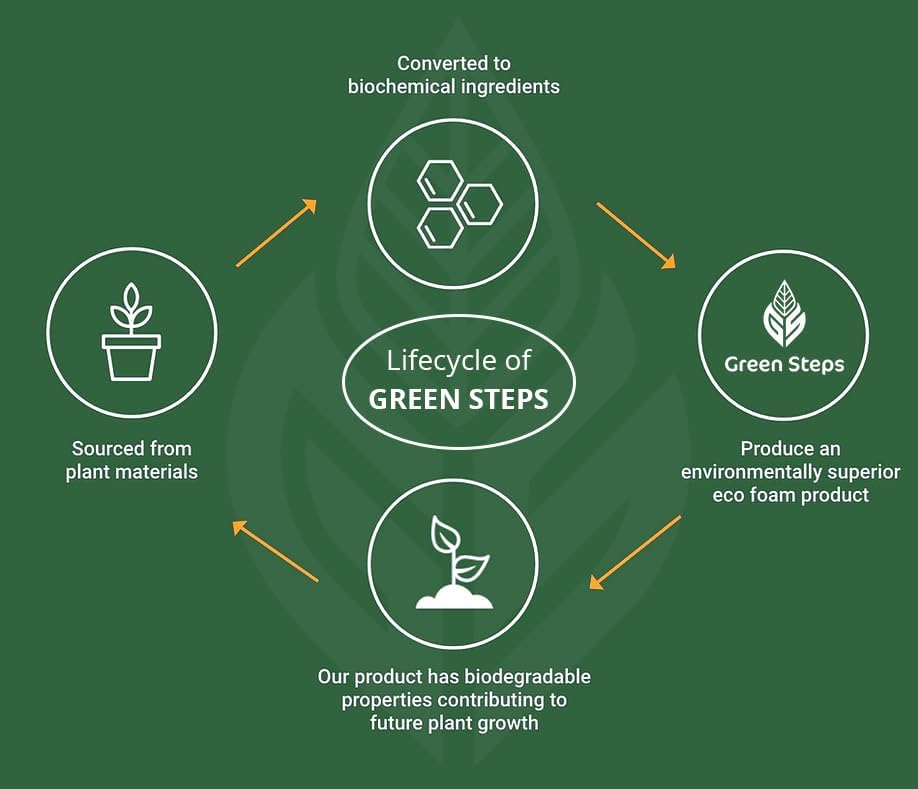Green Steps Eco-inlägg är tillverkade med upp till 76% växtbaserat bioinnehåll, vilket kraftigt minskar användningen av fossil plast. Skumkärnan består delvis av algmaterial som är en snabbt förnybar råvara som ersätter en stor andel traditionell EVA. Trots sin miljövänliga uppbyggnad bibehåller inlägget den stabilitet och stötdämpning som krävs för att ge bra stöd till foten.